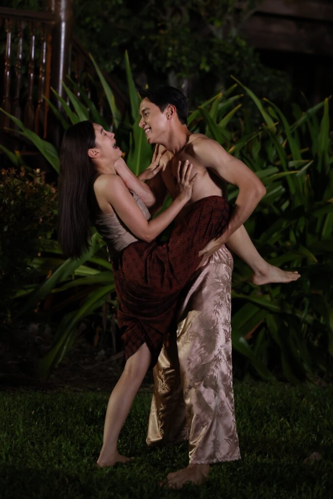 เบื้องหลังความวุ่นวายก็ไม่ธรรมดา เพราะผู้กำกับฯ วรวิทย์ จัดเต็มให้ทั้งคู่ไล่ล่ากันรอบบ้าน เริ่มจากเตียงนอนที่เจมส์บุกปลุกกลางดึก จนเบลล่าต้องปล่อยหมัดซ้าย-ขวา และถึงขั้นถีบจนพระเอกตกเตียง ก่อนจะเผ่นแน่บออกนอกห้อง แต่เจมส์ยังไม่ยอมแพ้ คว้าตัวมากอดไว้ จนเสียงกรี๊ดสนั่นลั่นกองถ่าย